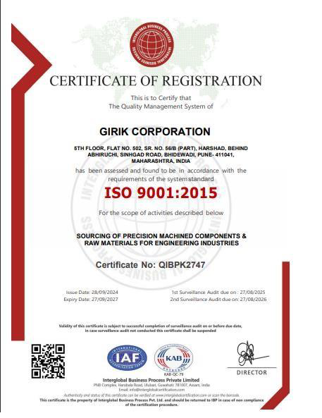 GIRIK CORPORATION Specializes in Manufacturing of precision Components Raw Material from Reliable Suppliers (IATF ISO Certified)